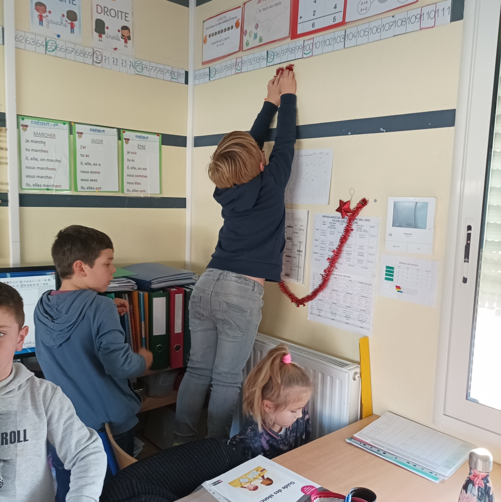 Quel plus joli mois que celui de décembre! Alors pour se mettre dans l'ambiance de Noël, les élèves de CP CE1 ont décoré la classe, fabriqué des décorations de Noël et des cartes! Les élèves attendent avec impatience la venue du Père Noël!