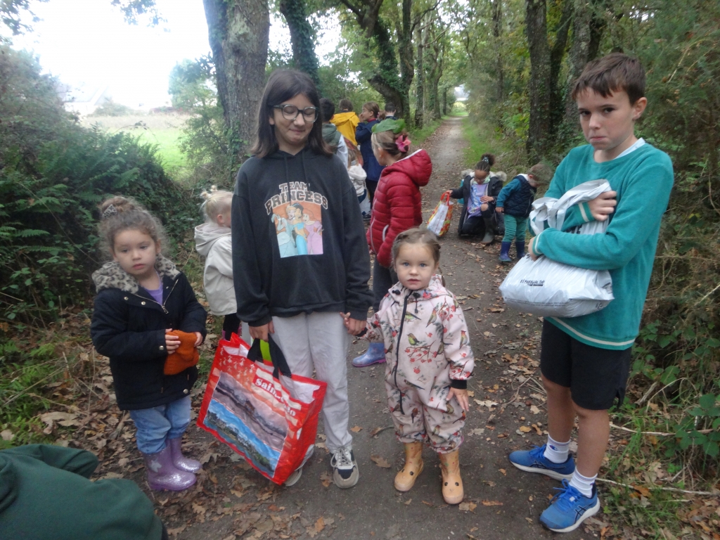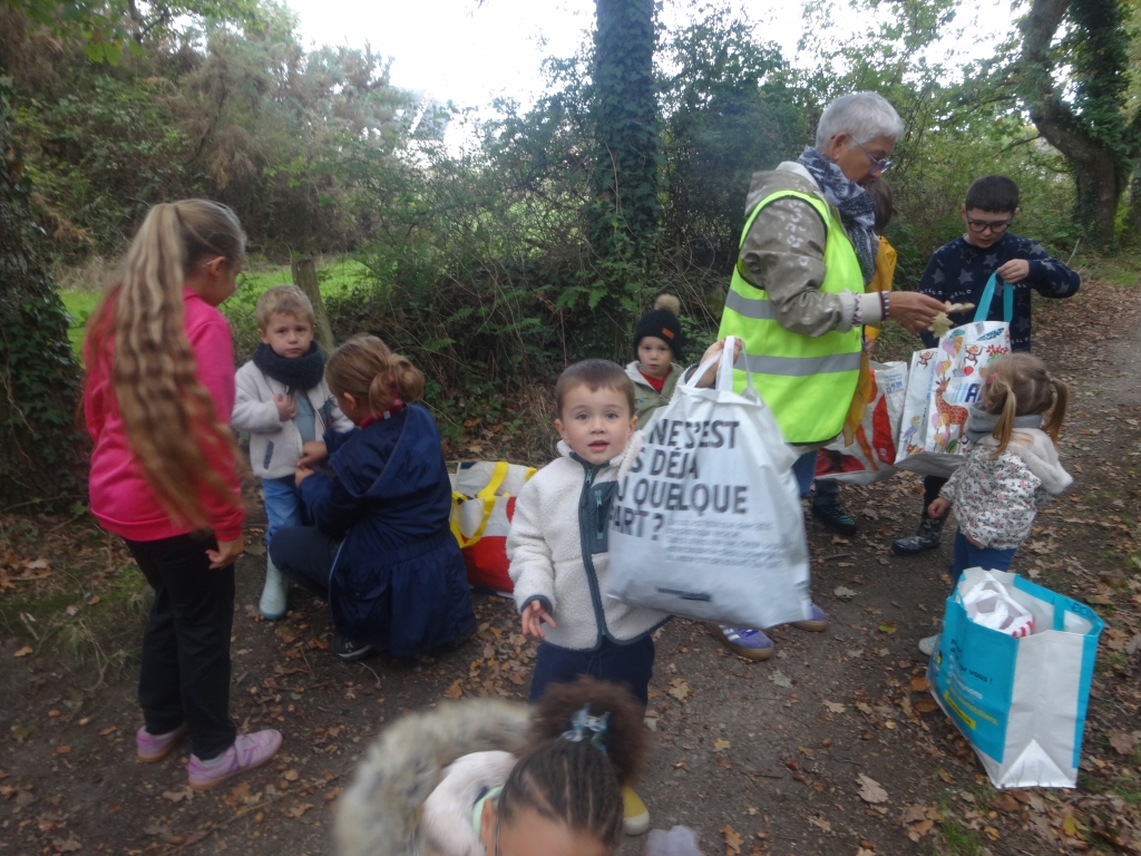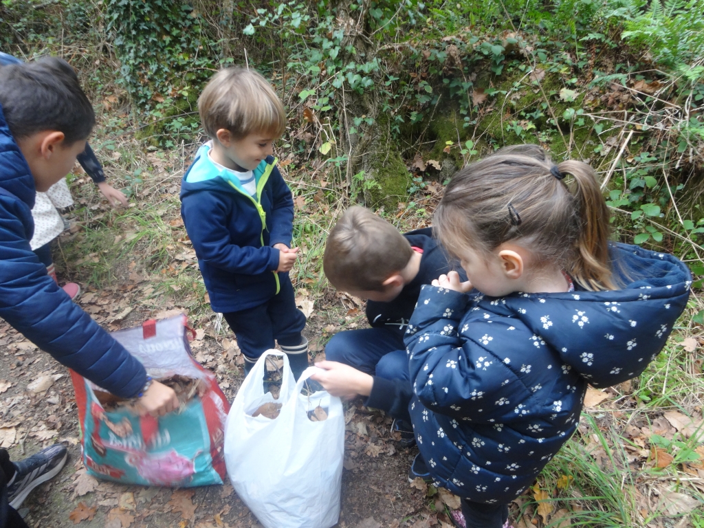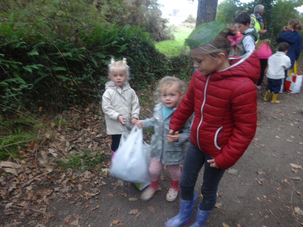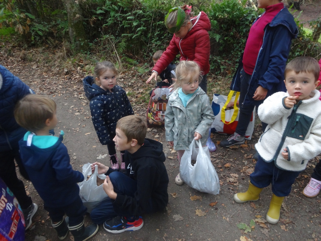 , les classes de CM1-CM2 et de Petite Section se sont associées pour faire une sortie au parc de Kéravéon... Une belle occasion d'observer la nature, la forêt en automne...On a pu aussi écouter, sentir, toucher tout l'environnement autour de nous...Nous avons ramassé des feuilles pour préparer les carrés de terre (pour l'hiver) qui se situent dans le jardin de notre école mais aussi des petits trésors des bois ramenés en classe...