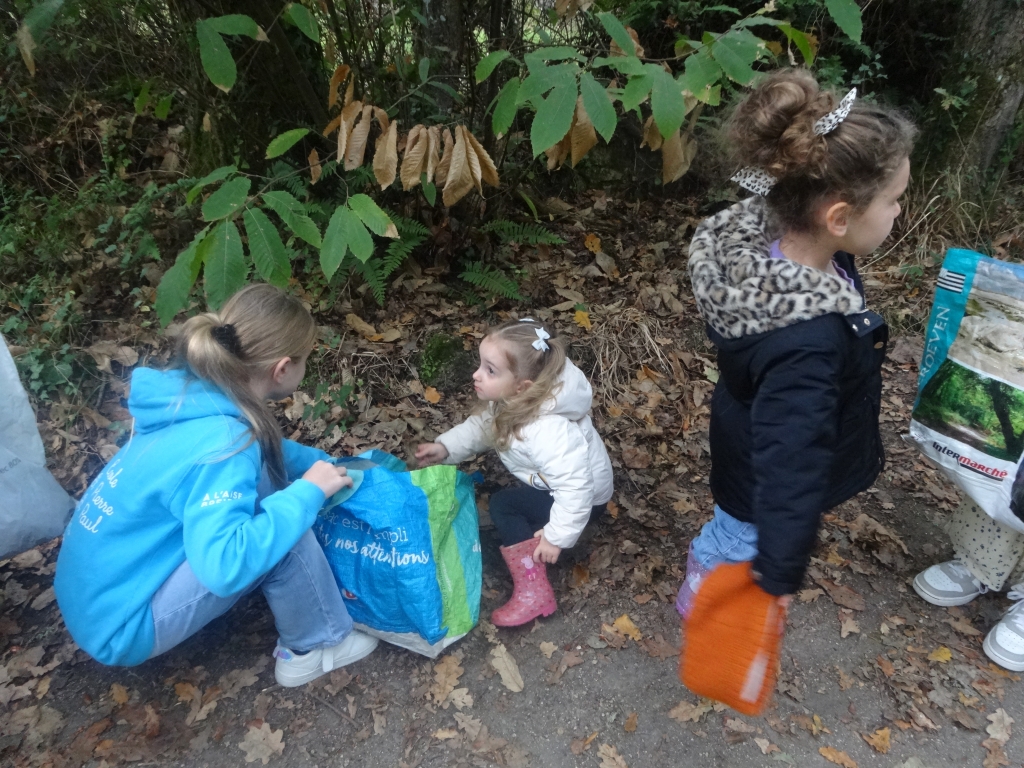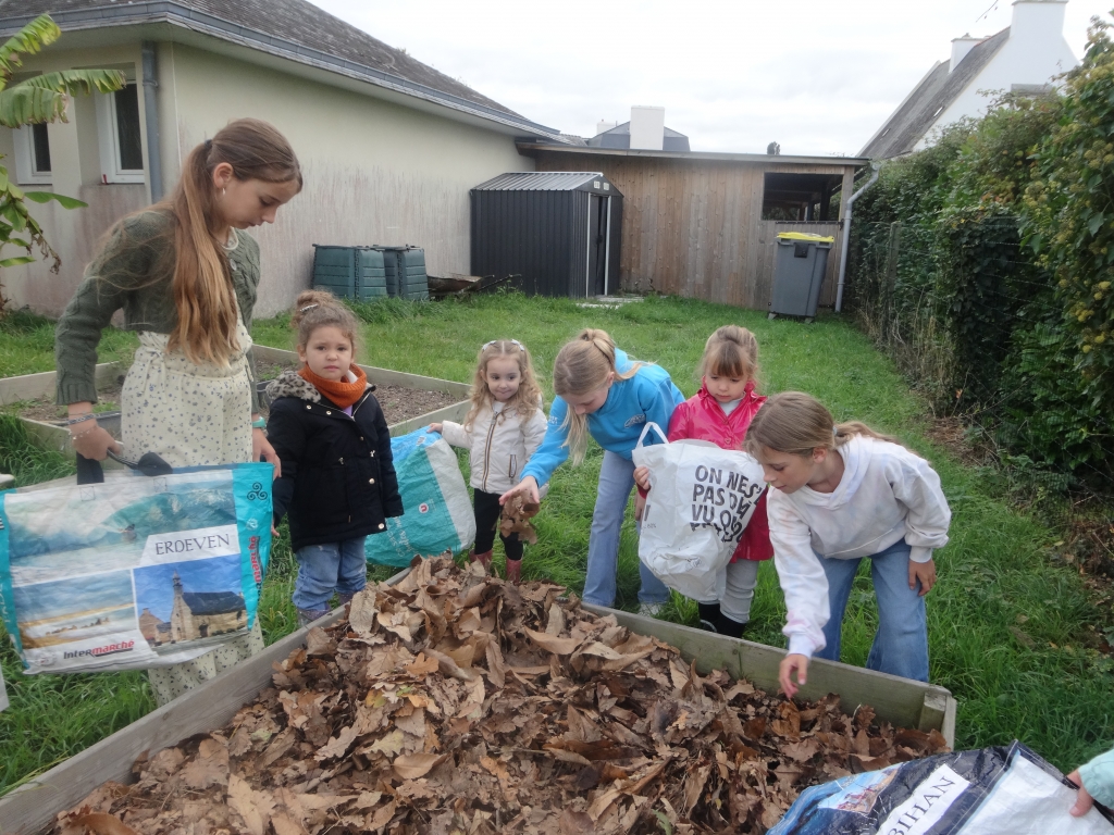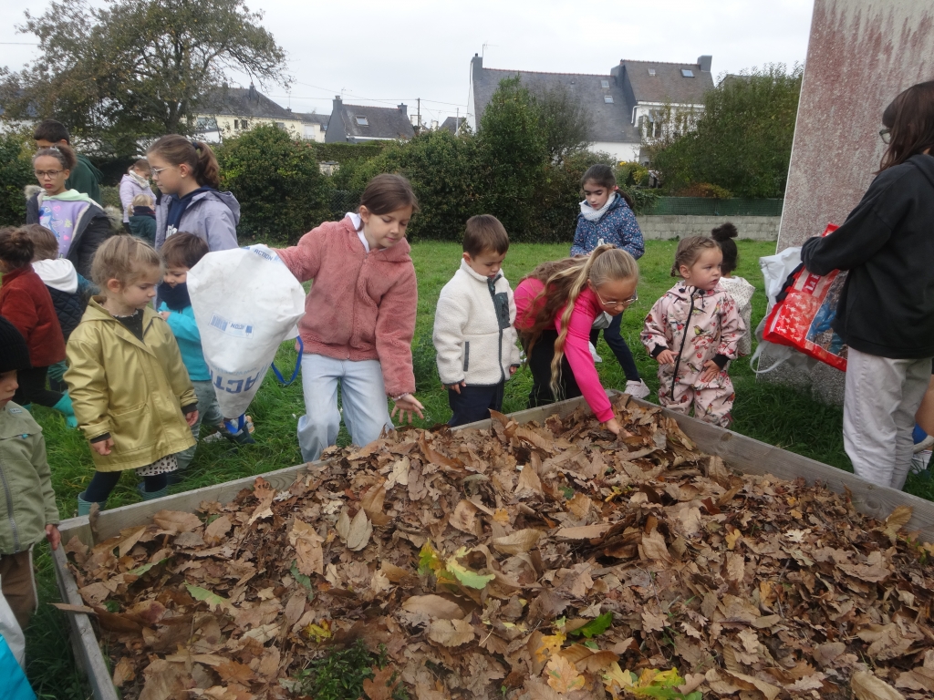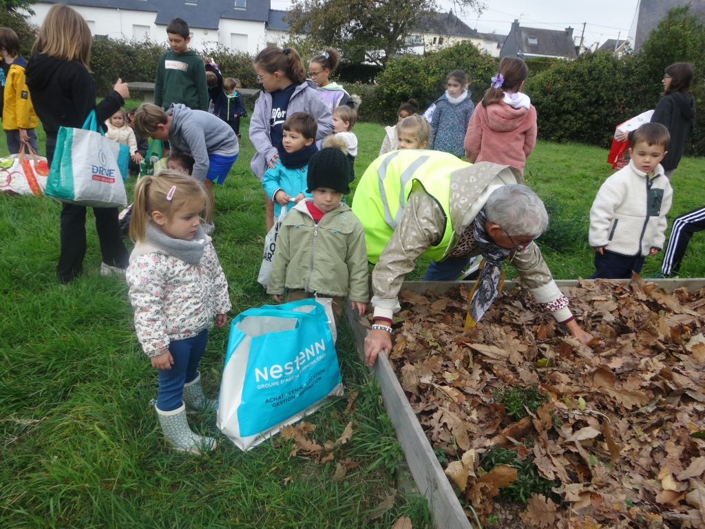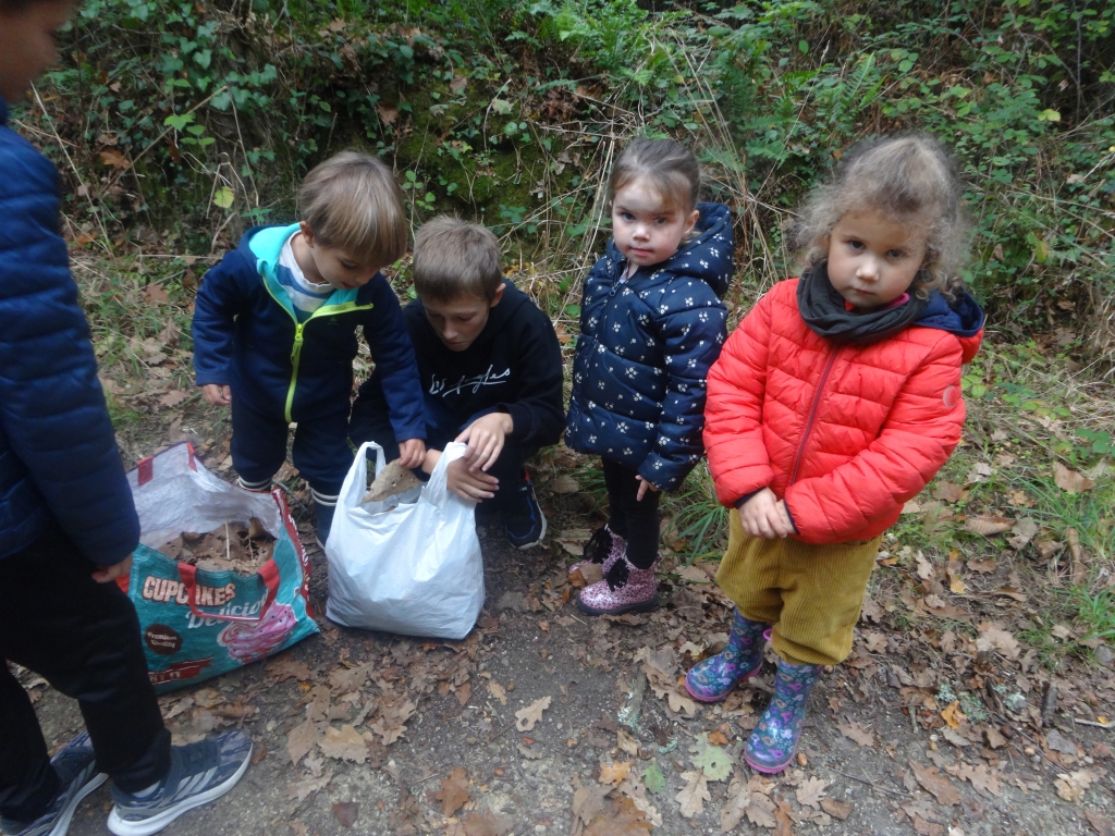, les classes de CM1-CM2 et de Petite Section se sont associées pour faire une sortie au parc de Kéravéon... Une belle occasion d'observer la nature, la forêt en automne...On a pu aussi écouter, sentir, toucher tout l'environnement autour de nous...Nous avons ramassé des feuilles pour préparer les carrés de terre (pour l'hiver) qui se situent dans le jardin de notre école mais aussi des petits trésors des bois ramenés en classe...