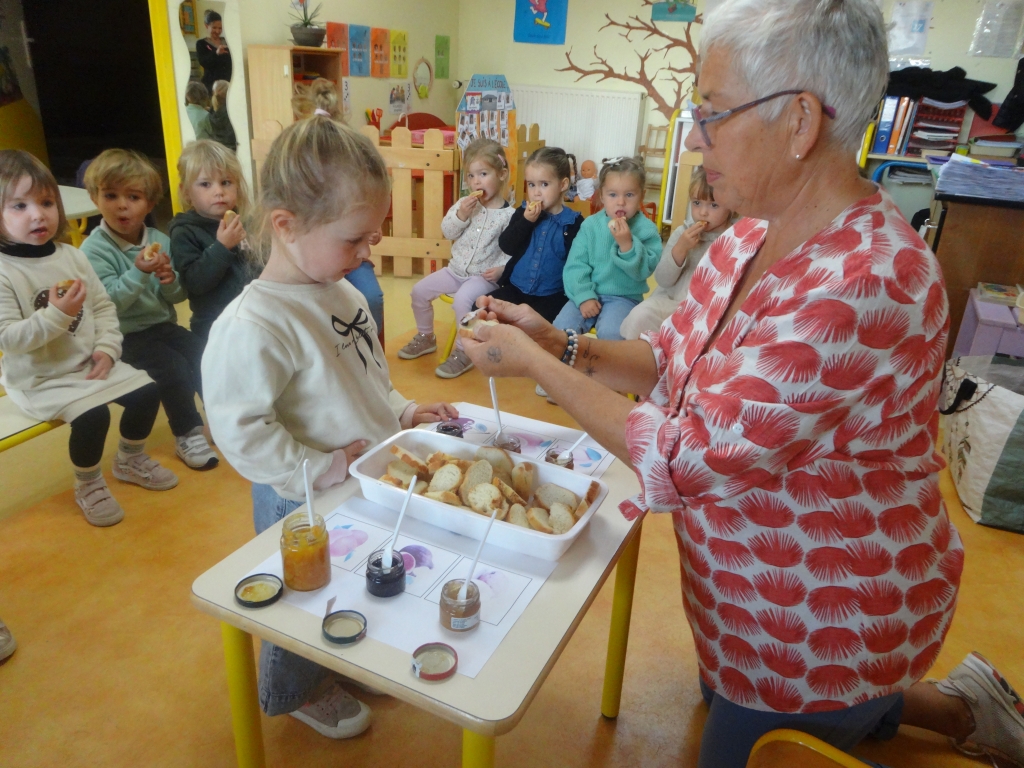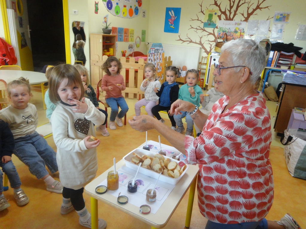 Pour poursuivre sur la découverte de nouvelles saveurs (semaine du goût), nous avons fait une dégustation de confitures (moins connues) sur de la baguette fraîche : clémentine, citron, figue, cerise, cédrat, orange! Après quelques hésitations, nous avons beaucoup apprécié!