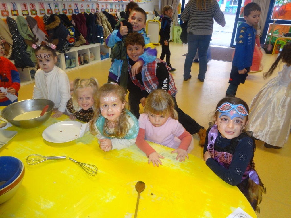 Voici en retour en images de notre matinée "carnaval"!! Tous les élèves (répartis en groupes toutes classes confondues) ont pu participer à différents ateliers (encadrés par les CM) : maquillage, création d'un petit masque, confection de crêpes, danse, lecture!! Un beau moment de cohésion entre les petits et les grands!